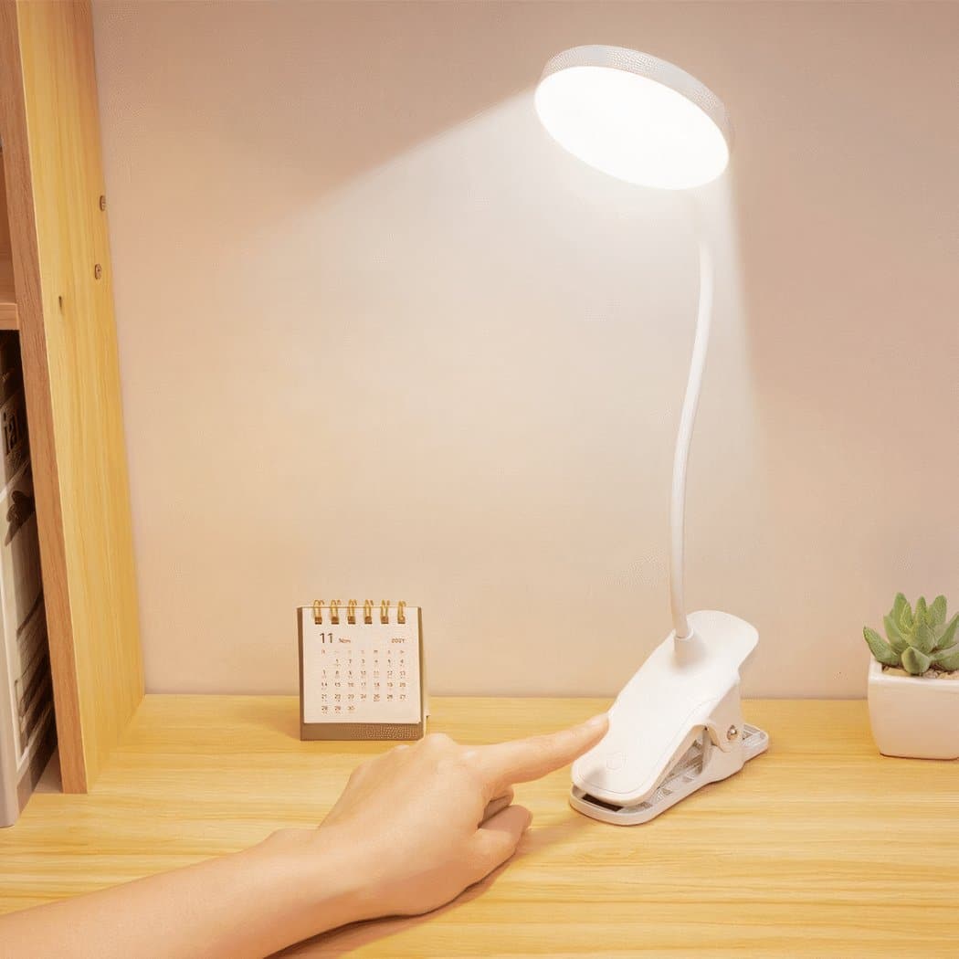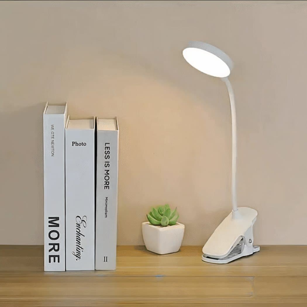 Découvrez la petite lampe de bureau blanche rechargeable à pince, une solution d’éclairage élégante et fonctionnelle pour votre espace de travail. Son design compact et sa couleur blanche raffinée s’harmonisent avec tous les décors.
