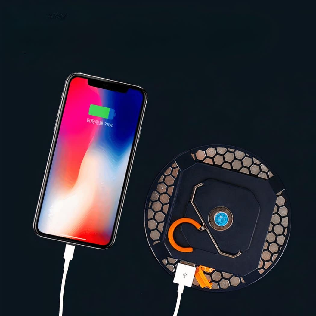 De plus, cette lampe fonctionne également comme un chargeur de téléphone portable grâce à sa batterie rechargeable intégrée. Il vous suffit de connecter votre smartphone via le câble USB pour recharger la batterie en déplacement – pratique lorsque vous n’avez pas accès à une prise secteur !