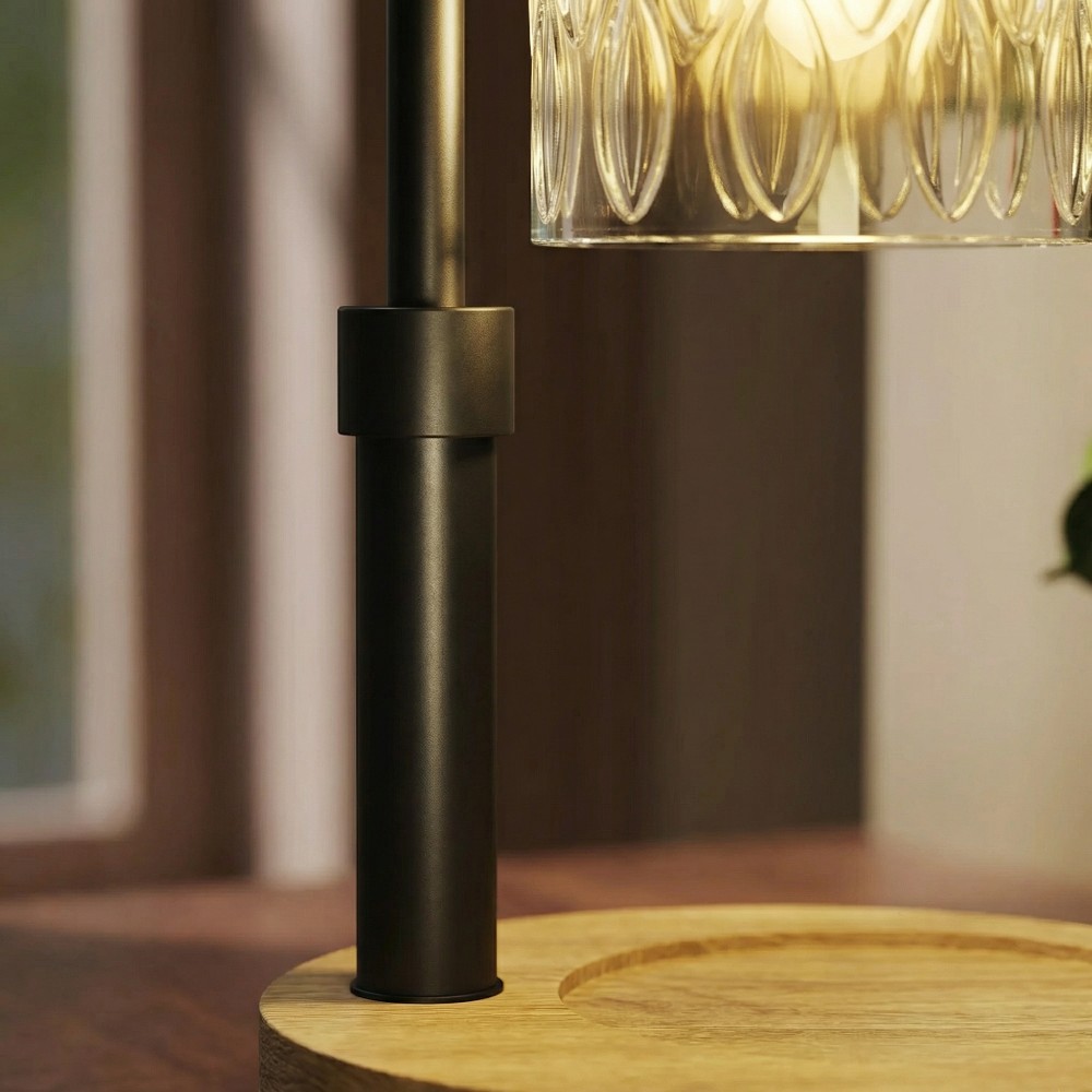 Cette pièce unique sublime votre décoration par son contraste raffiné entre métal sombre et bois noble. Son socle en chêne massif apporte une chaleur naturelle, tandis que l’abat-jour en verre transparent diffuse un éclat cristallin. Elle s’intègre harmonieusement sur une table de chevet ou un bureau, témoignant d’un goût certain pour les objets de qualité.