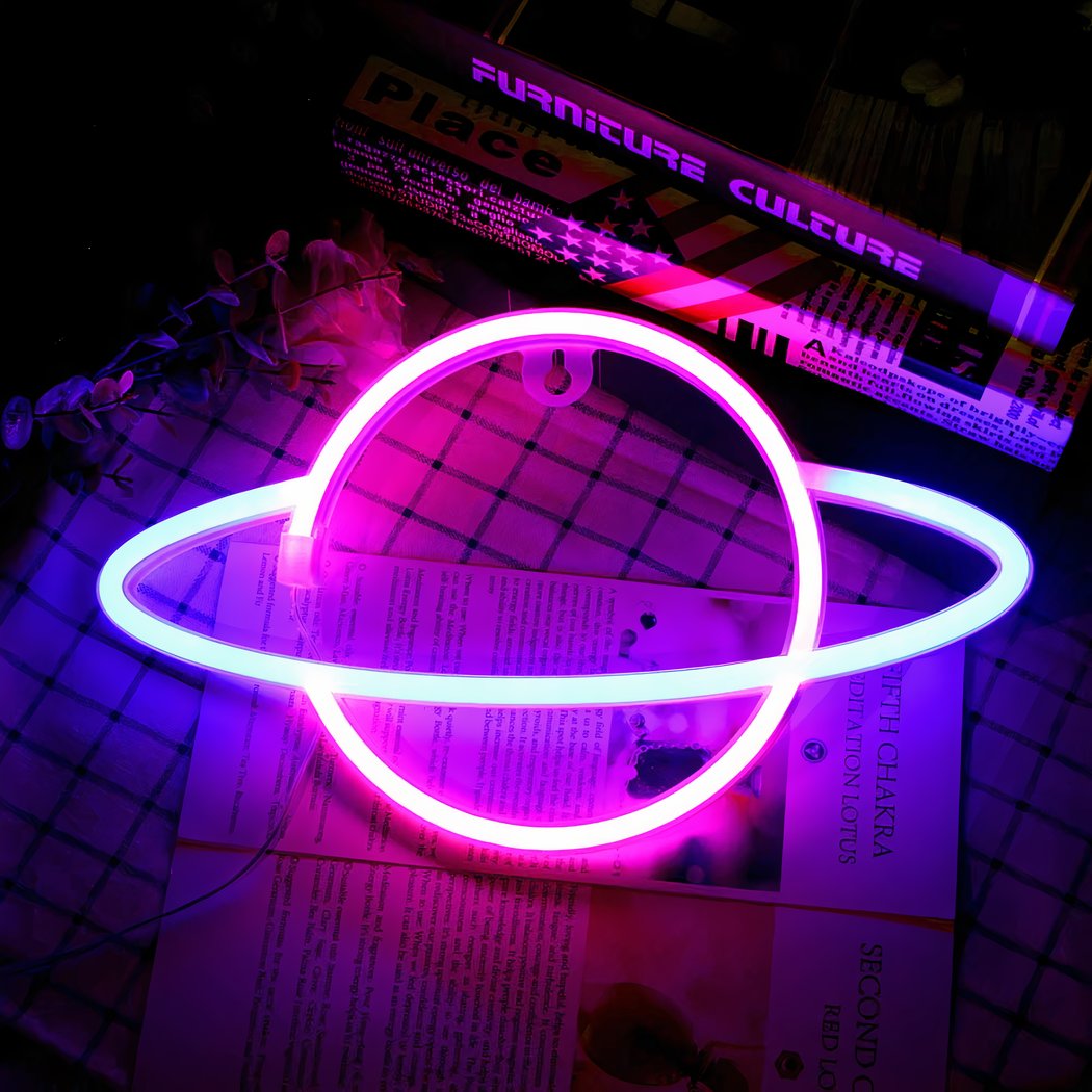 Cette magnifique lampe néon en forme de planète aux différentes couleurs pour apporter à votre chambre ou votre salon une ambiance loft industriel fashion. Vous pouvez choisir entre 7 ensemble de couleurs. Cette lampe fonctionne sur pile ou sur USB donc est facilement transportable.