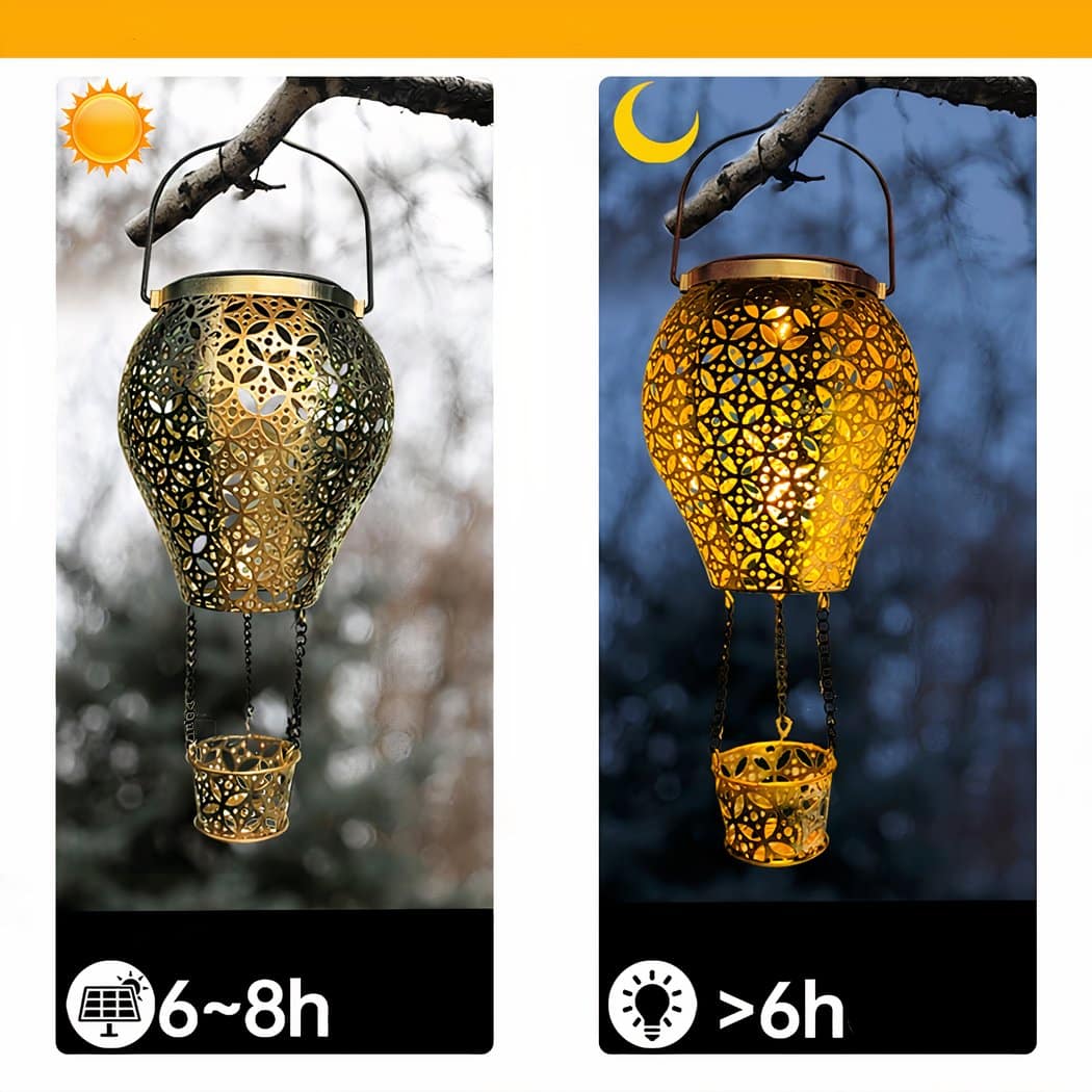 Optez pour la modernité avec style grâce à cette lampe solaire lanterne LED en forme de montgolfière ! Elle deviendra sans aucun doute l’élément incontournable de votre espace extérieur en ajoutant une note originale et sophistiquée.