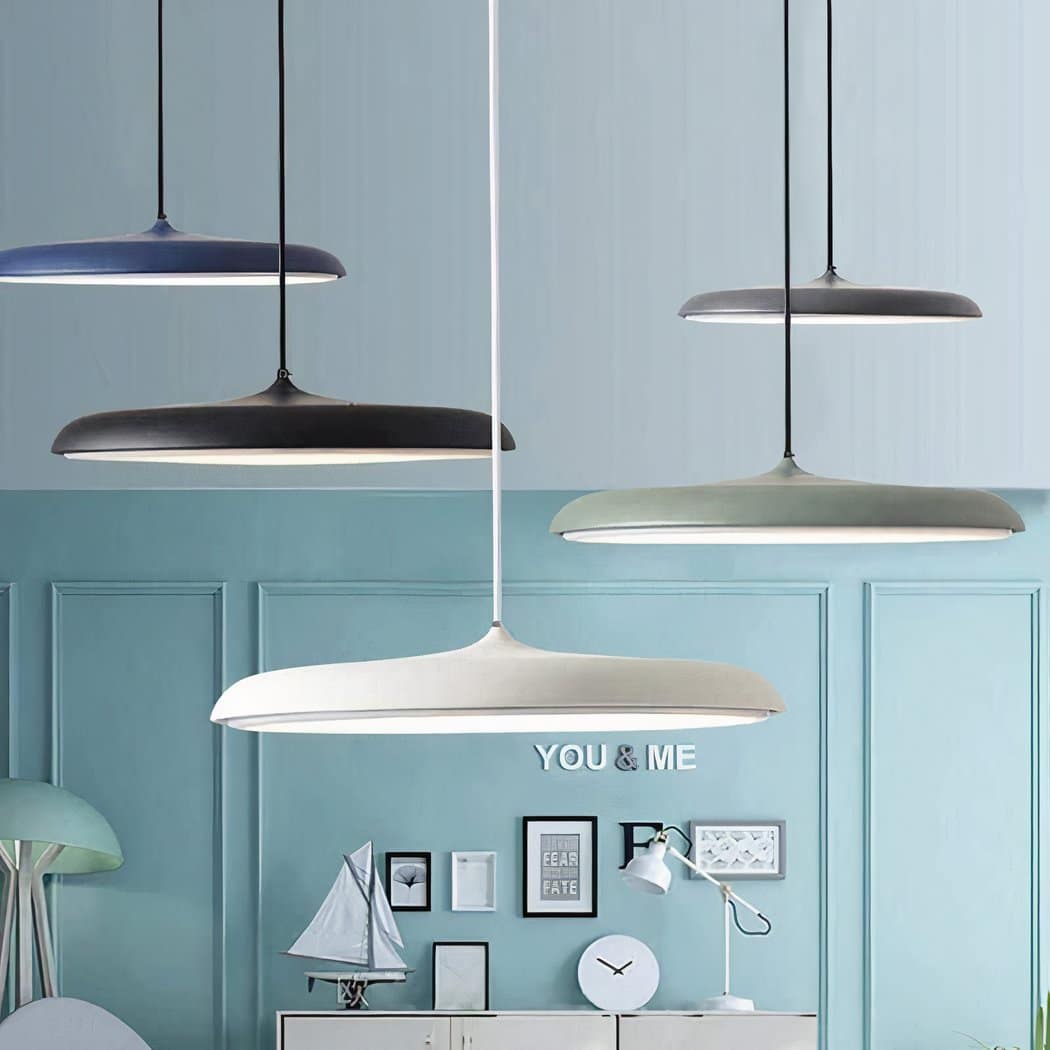 La lampe suspendue est un luminaire qui peut être placé dans n’importe quelle pièce. Cette lumière en forme d’ovni est directionnelle, fournit de l’ombre et crée un effet visuel fort grâce à son design unique. La source lumineuse émet une douce lueur depuis l’intérieur de l’ovni.