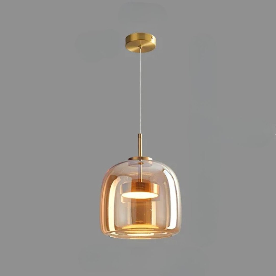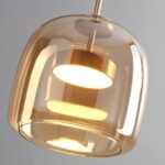 Élevez votre décor avec cette lampe plafond ambrée, où le verre rencontre le cuivre pour un rendu visuel impressionnant. Le design moderne et épuré en forme de verre focalise l’attention sur la qualité de la lumière, diffusant un éclat chaleureux et enveloppant. C’est l’accessoire idéal pour les intérieurs modernes cherchant à mélanger fonctionnalité et esthétique avant-gardiste.