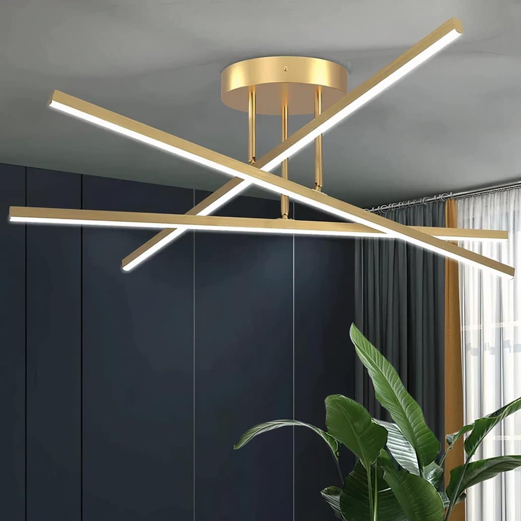 Transformez votre espace avec cette lampe plafond, où le design ne connaît pas de limites. Son allure avec trois barres métalliques en fait un point focal de toute décoration. Elle n’illumine pas seulement par sa lumière, mais par son esthétique audacieuse et moderne, parfait pour ceux qui cherchent à impressionner.