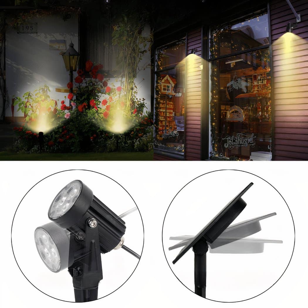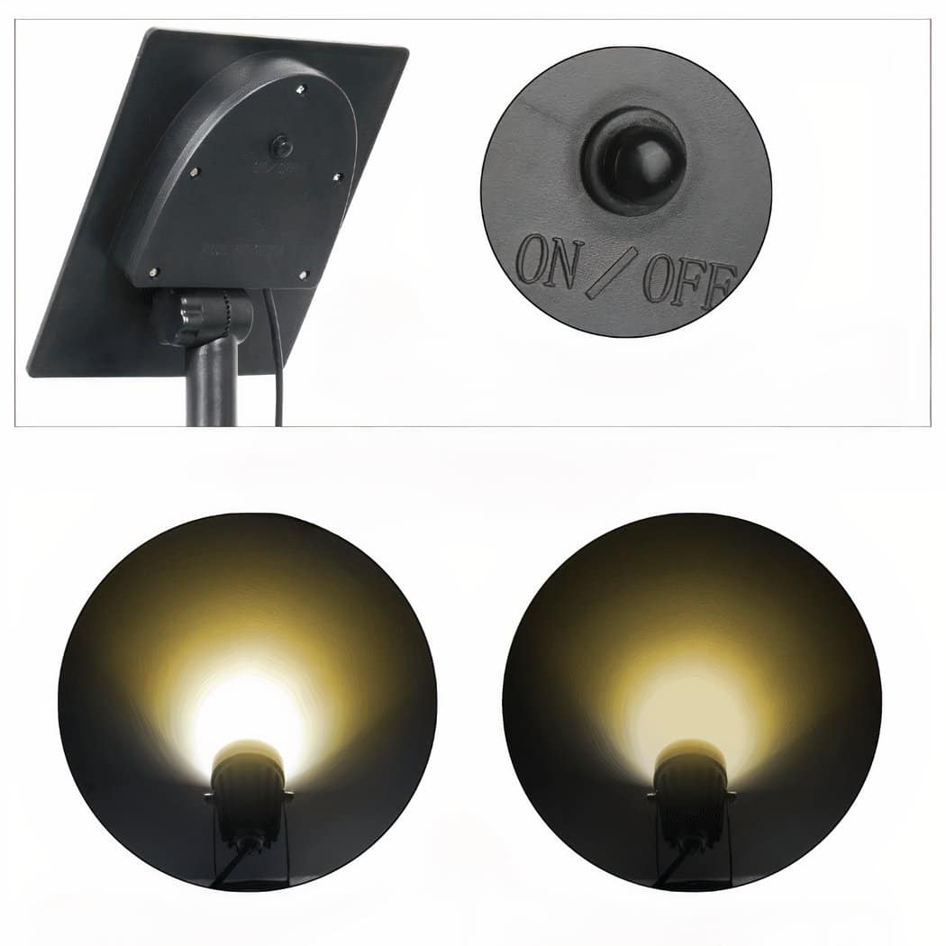 La lampe est équipée de quatre têtes orientables indépendamment pour ajuster l’angle d’éclairage selon vos préférences. Les piquets assurent une installation facile dans tous types de sols souples ou semi-durs afin que vous puissiez positionner chaque lampe où bon vous semble dans votre espace extérieur.